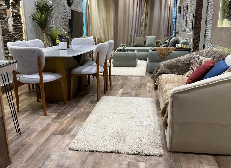 يوجد أيضًا المطبخ الكامل المزود بجميع أدوات المطبخ الضرورية. يقع مطار القاهرة الدولي على بعد 29 دقيقة فقط بالسيارة.